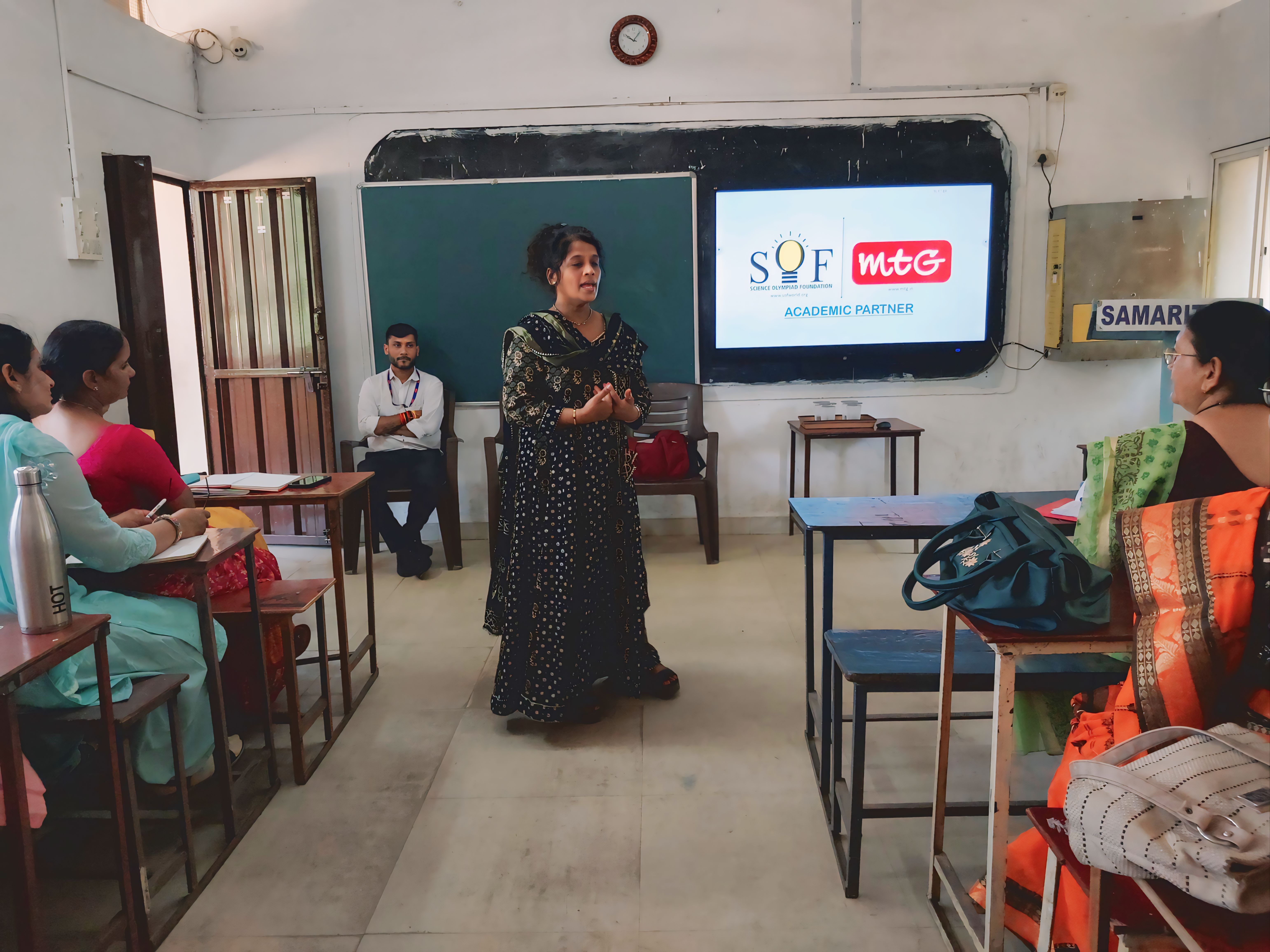 The Hindi subject training organized by MTG Group at the Samaritans School Primises provide interesting information, ideas and a new system of teaching Hindi to the teachers, in which Hindi teachers from all branches of Samaritans get training under the direction of Megha Fadanvis.