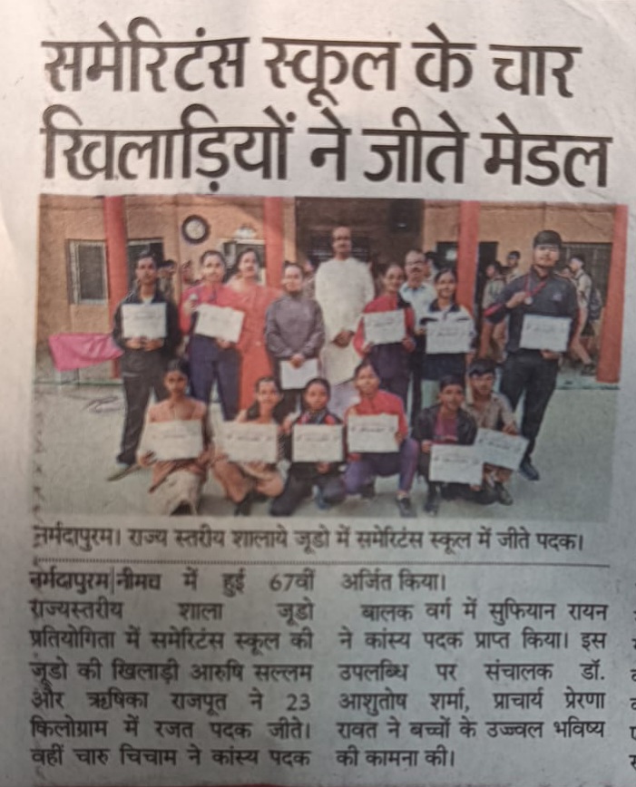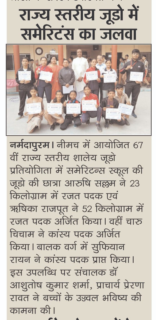 Medals won in the state level school judo competition:- In the 67th state level school judo competition held in Neemuch, Judo student of Samaritans School, Aarushi Sallam won the silver medal in 23 kg, and Rishika Rajput won the silver medal in -52 kg. Charu Chicham won the bronze medal. Sufiyan Rayan won the bronze medal in the boys category. Director of Samaritan School, Dr. Ashutosh Kumar Sharma, Principal Prerna Rawat, Sachin Khamparia, Coach Vaishali Tiwari, Mamta Chauhan, expressed happiness and congratulated the children on this achievement. given l