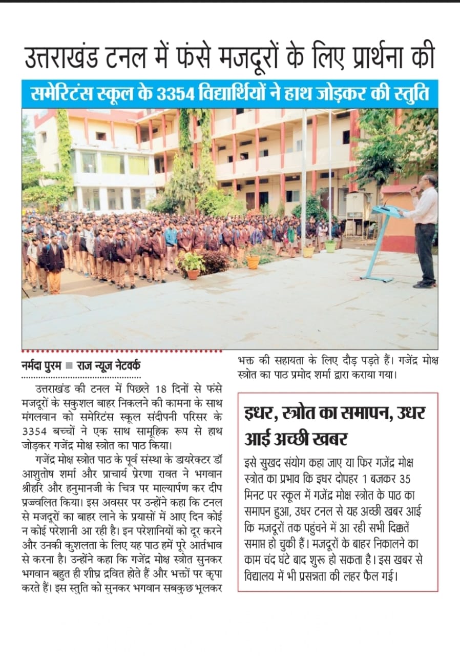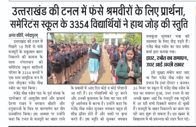 On Tuesday, 3354 students collectively united together in Samaritans School Sandipani Parisar and recited Gajendra Moksha Stotra, praying for the safe exit of the laborers trapped in the tunnel of Uttarakhand for 18 days.