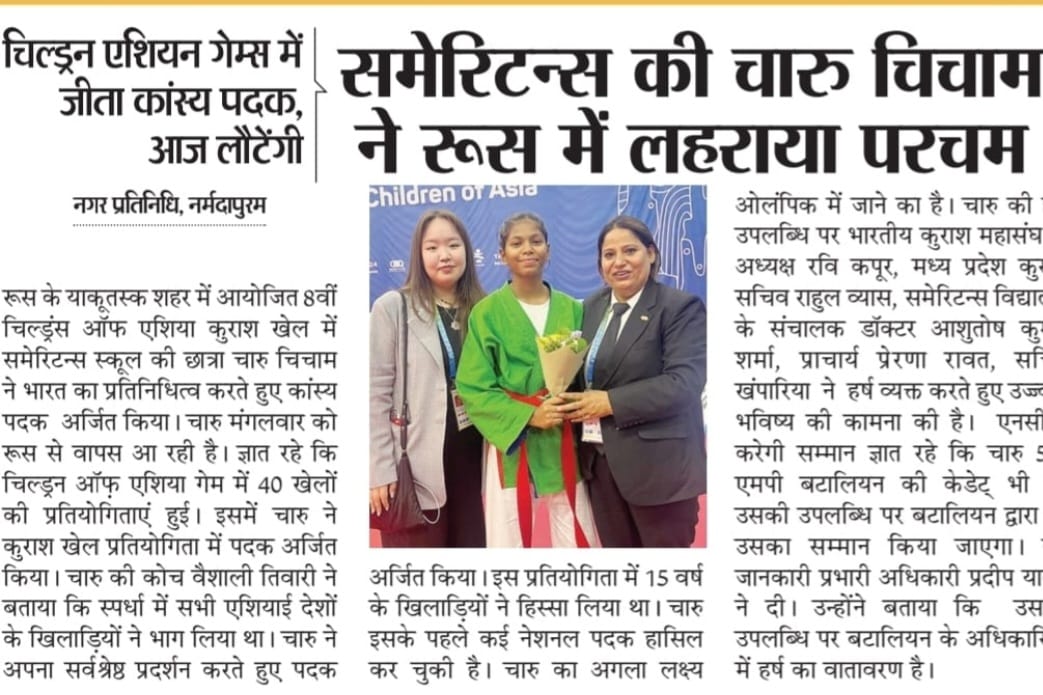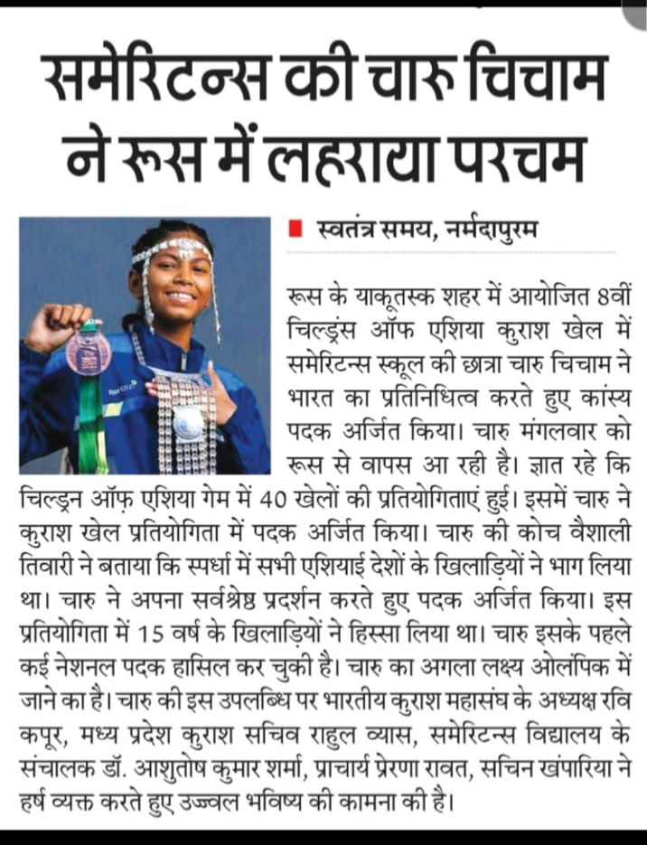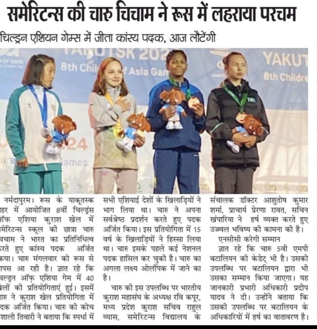Charu Chicham, a student of Samaritans School, represented India and won the bronze medal in the 8th Children of Asia Kurash Games held in Yakutsk city, Russia.